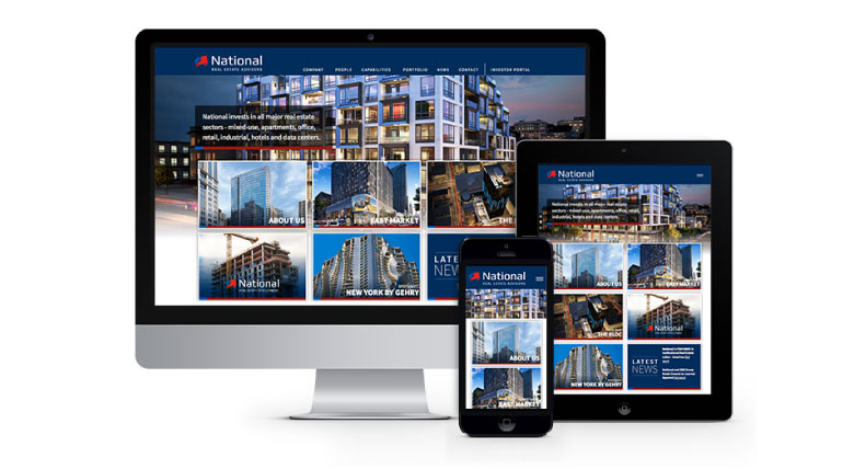 After first developing a new brand identification refresh and comprehensive communications platform, we focused on utilizing the stunning photography of properties that National owned and created a slide show for the home page which featured that portfolio. We built a searchable database which included all of their properties, then created a custom map with a zoomin and out feature so the user could search for properties down to the local level. We incorporated Responsive Design technology which maximized the user experience on the desktop, tablet and smart phone versions of the site.